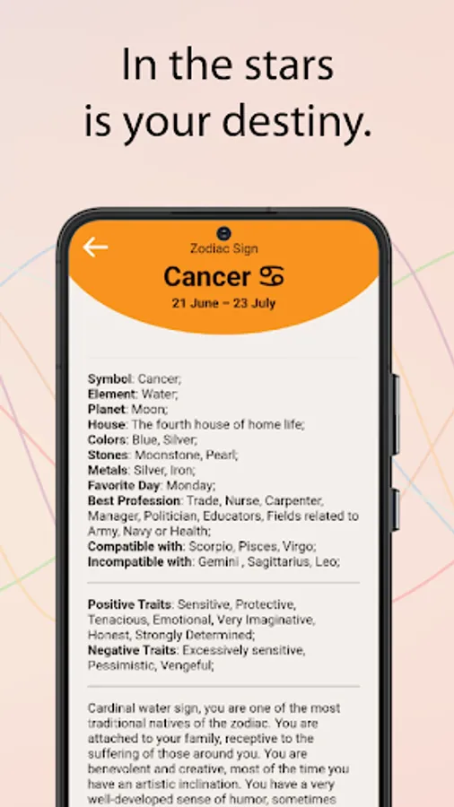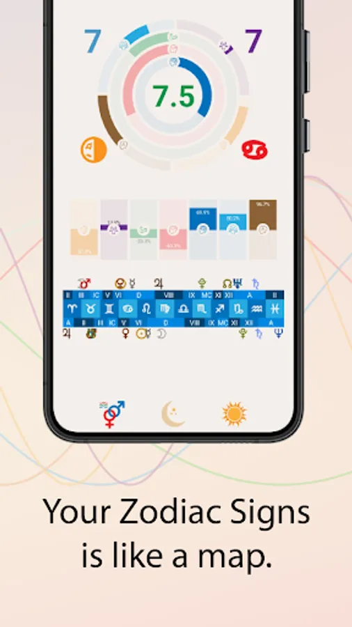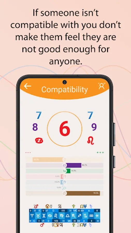 The compatibility module provides the compatibility score between you and your partner, the seven biorhythms are correlated and your mini zodiacal astrogram.