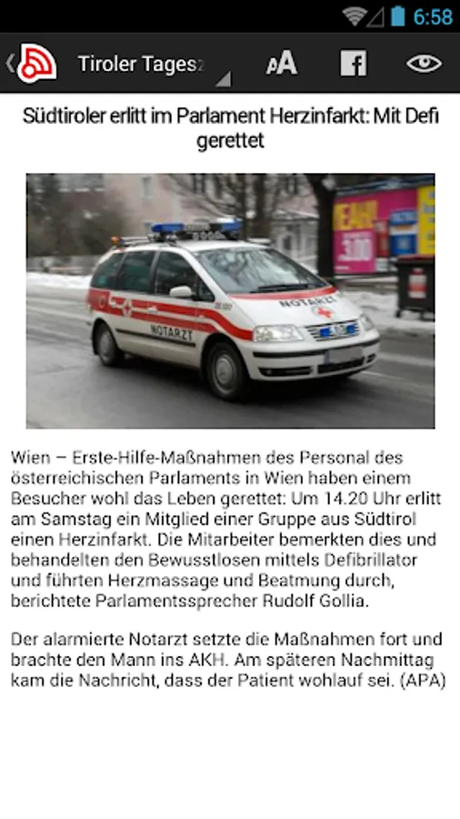 Fast, free app for Austrian news, with memory card memory for later offline reading.
