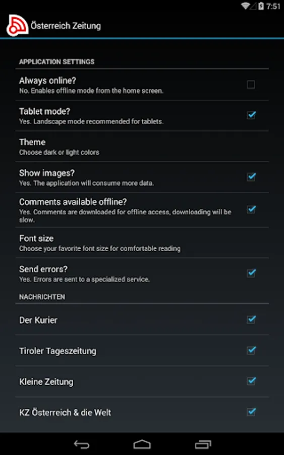 Austria News Application. Austrian News: comfortable reading of news even when offline.
