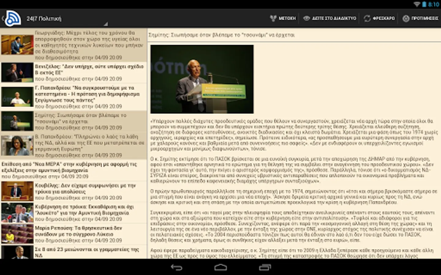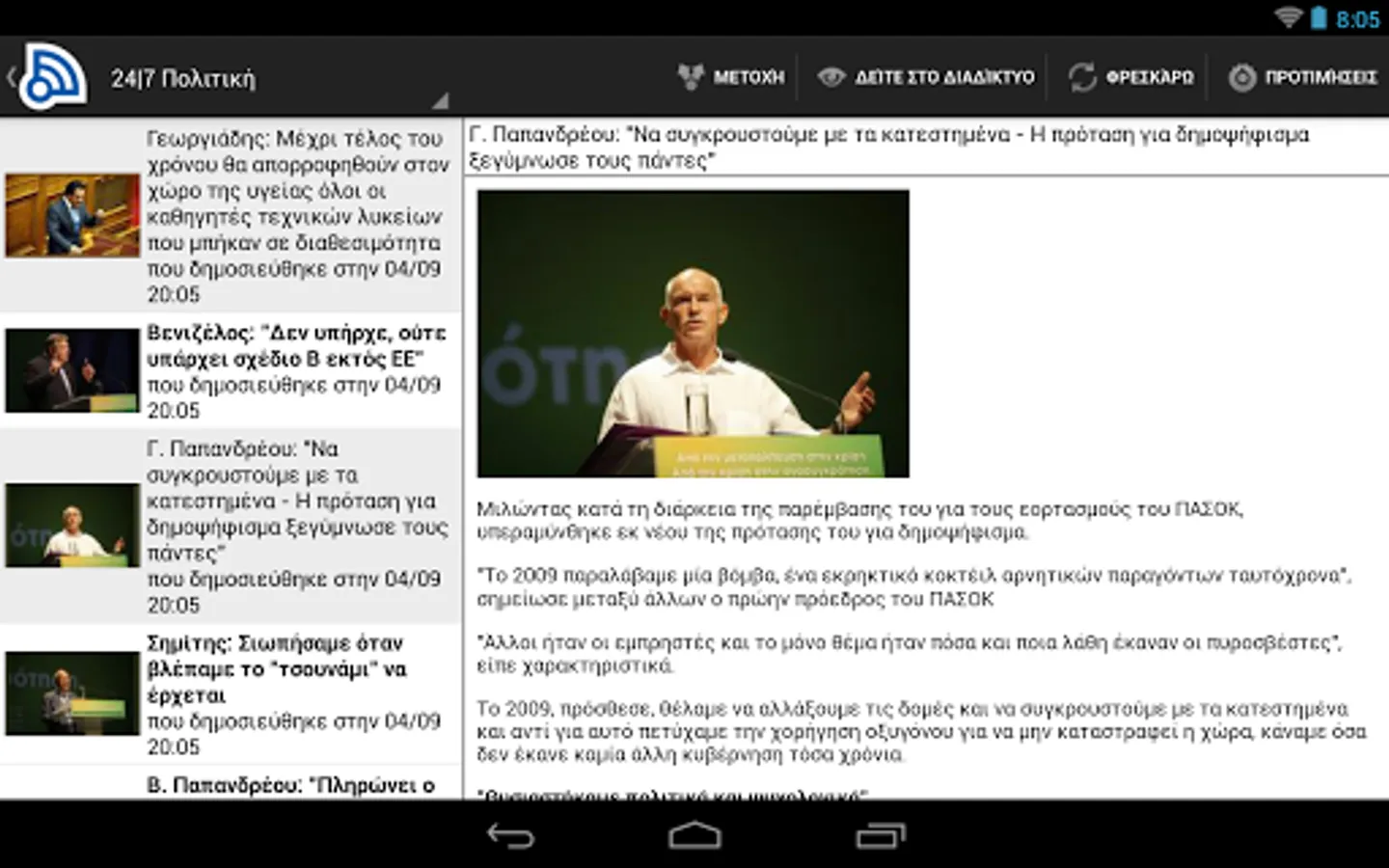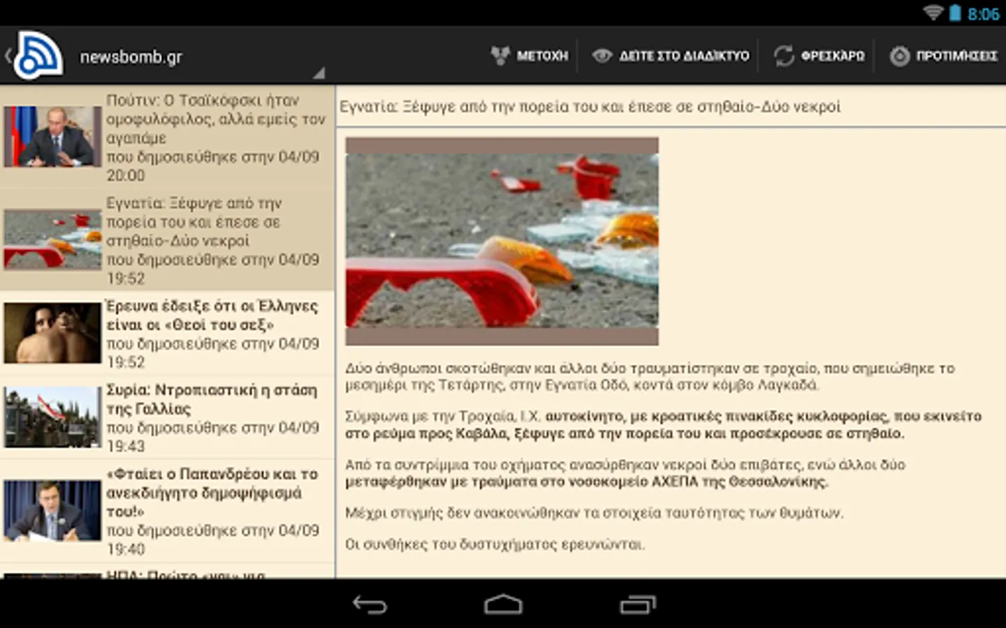 Fastest free application for Greece news, with memory card storage for later offline reading.