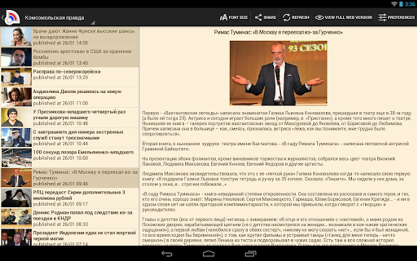 Fast, free app for Russian news, with memory card storage for later offline reading.