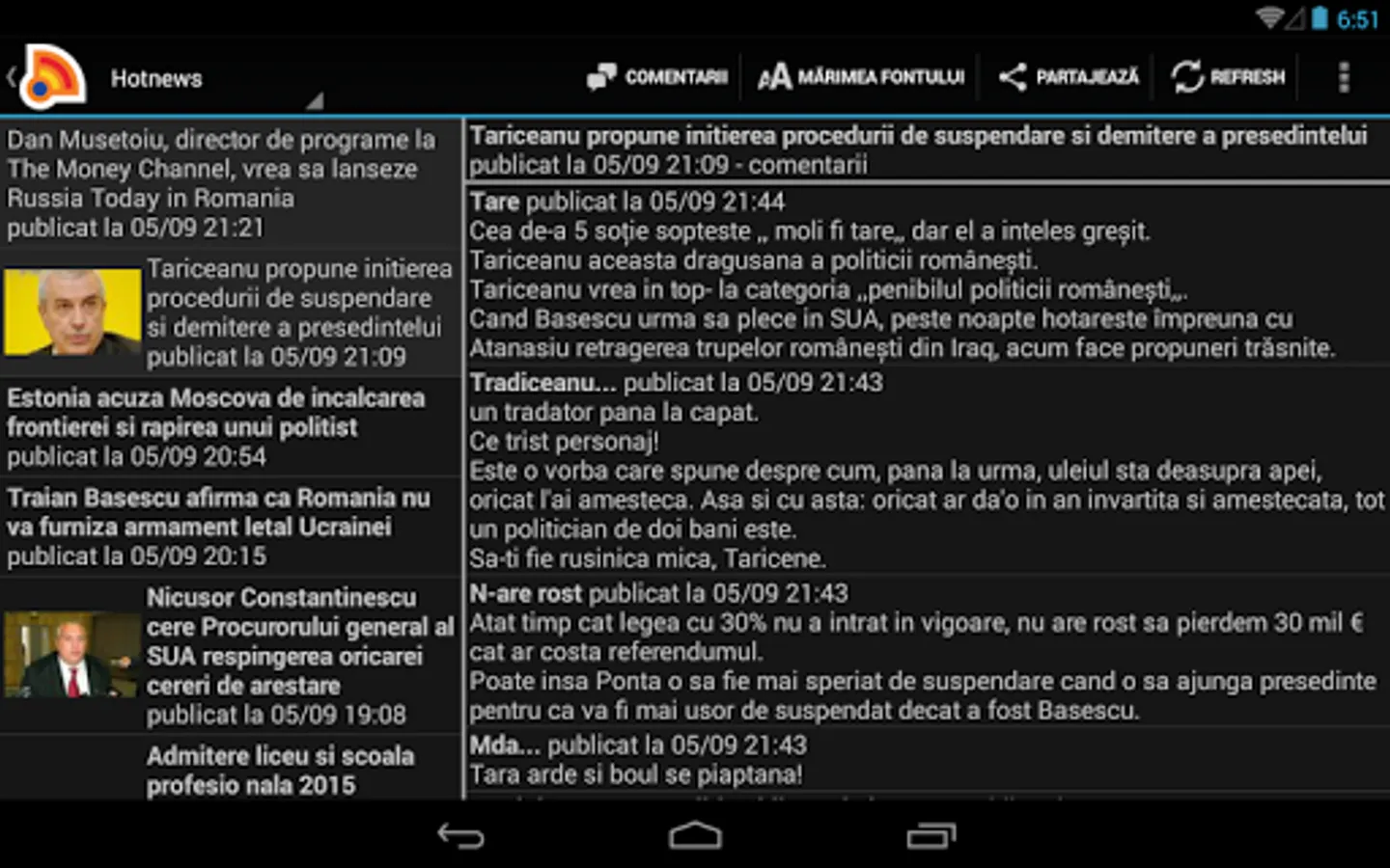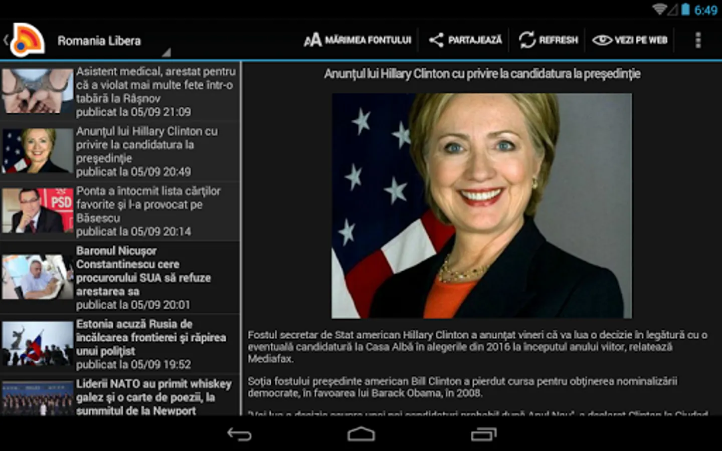Romania News Application. Comfortable reading of news even when offline.