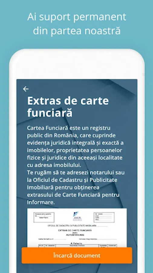 • Uploading documents - from mobile devices (pictures from gallery or taken with the phone camera/ local or virtual storage). Upload is available as individual upload of each file on its slot and/or through a single file (bulk) containing all the documents.