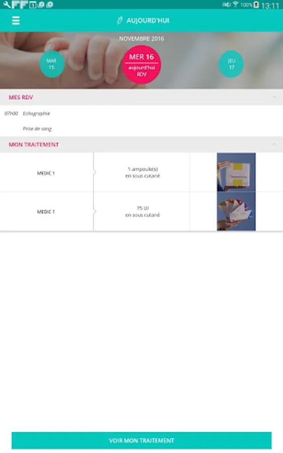 Patients can consult their daily treatment illustrated by tutorial videos, their reminders, their medical file but also all the information needed to improve their fertility.