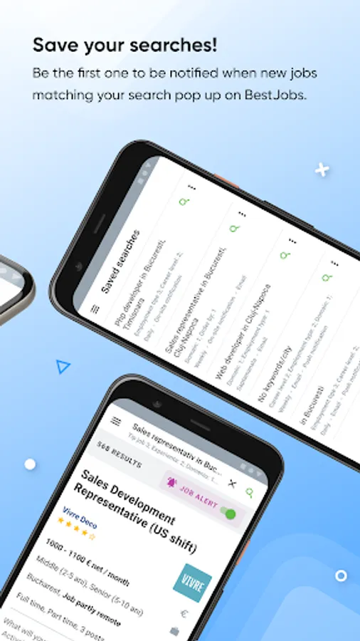- Get push notifications for new jobs that fit your search