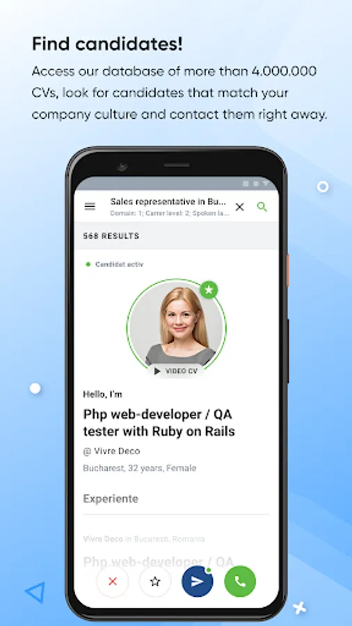 Looking to hire talent? Gain access to BestJobs recruiting features directly on your mobile phone. Promote jobs, check you applicants and choose the ones best suited for your business.