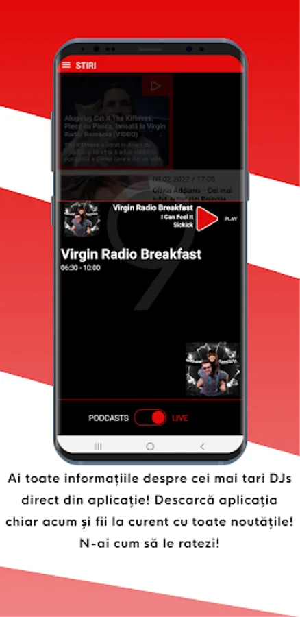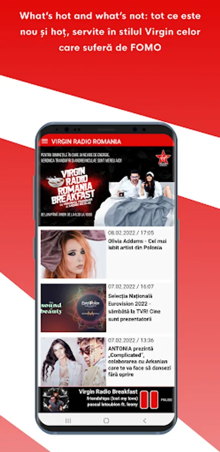 You listen to Virgin Radio Romania from anywhere, you have access to contests, you read the latest information in music, movies, international trends and you have the first access to everything that is about to go viral.