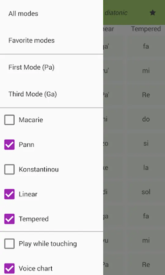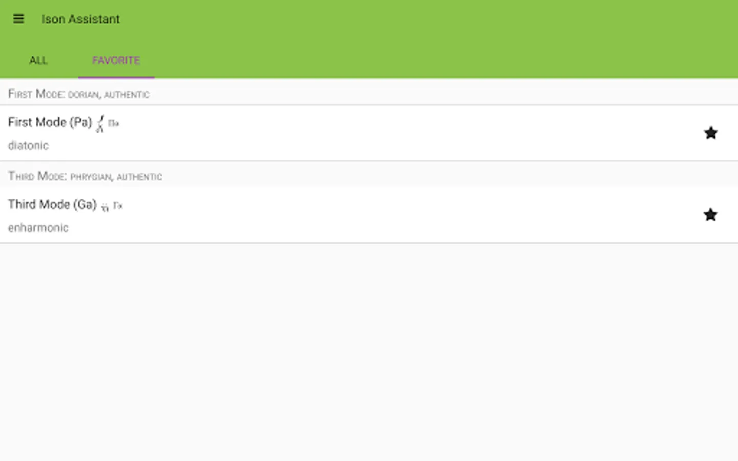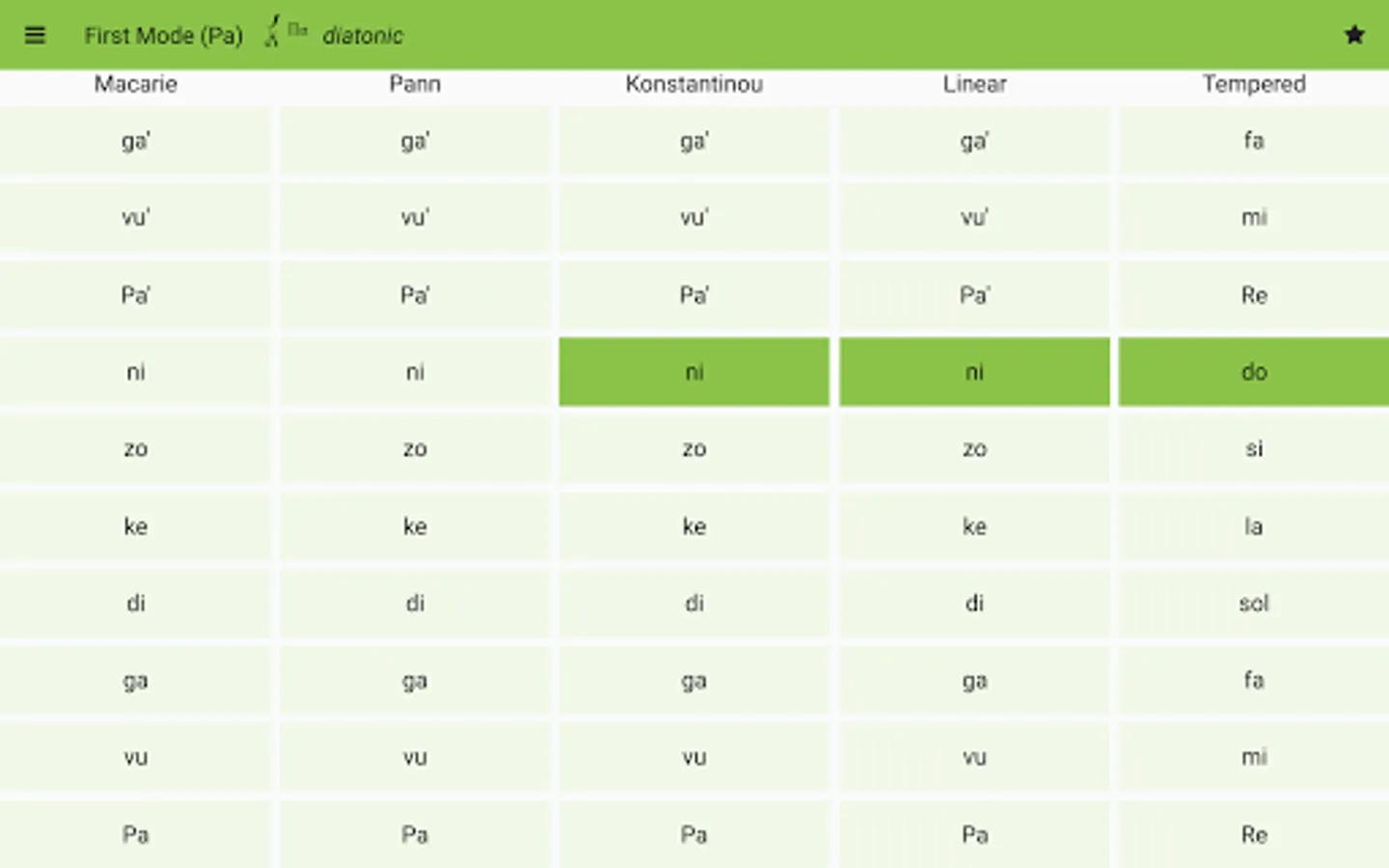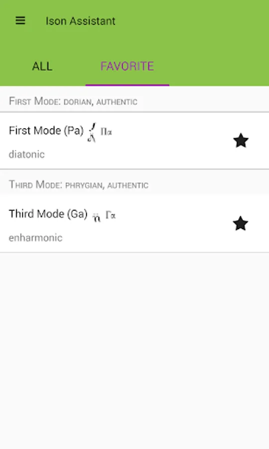 Ison Assistant displays the eight psaltic music modes using the Macarie, the Ieromonah, Anton Pann, E. Konstantinou, linear and tempered intervals.