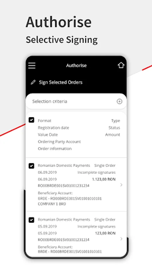 With BRD@ffice Mobile, you can view your company accounts data and to sign the payments initiated through the BRD@ffice site or through the MultiX app.
