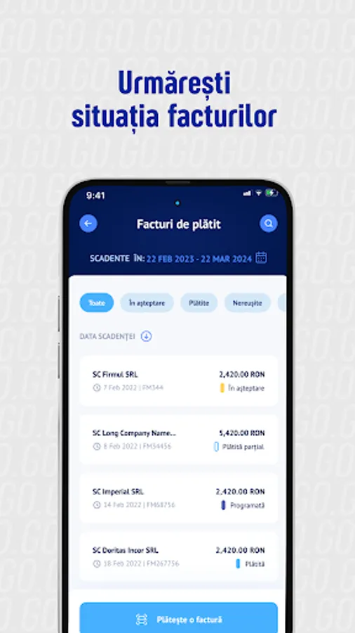 - With the mobile application you can take a photo of an invoice that you can pay in a few moments.