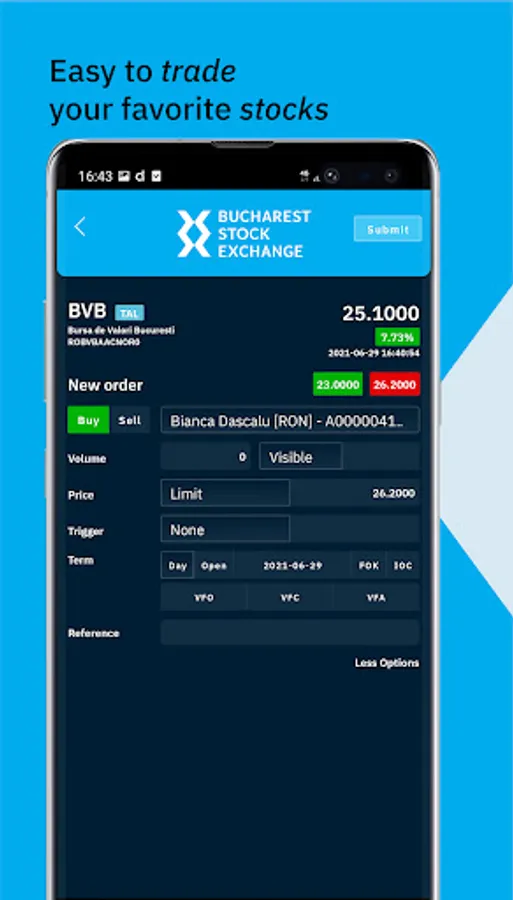 BVB Trading is a mobile trading terminal that provides operational and information support for trading at the Bucharest Stock Exchange. It is part of the Arena XT platform, the brokerage system developed by BVB.