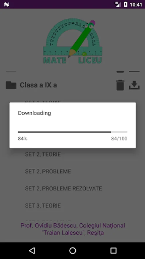 Field high school mathematics, taught by Prof. Ovidiu Bădescu, National College "Traian Lalescu" Resita, in electronic format.