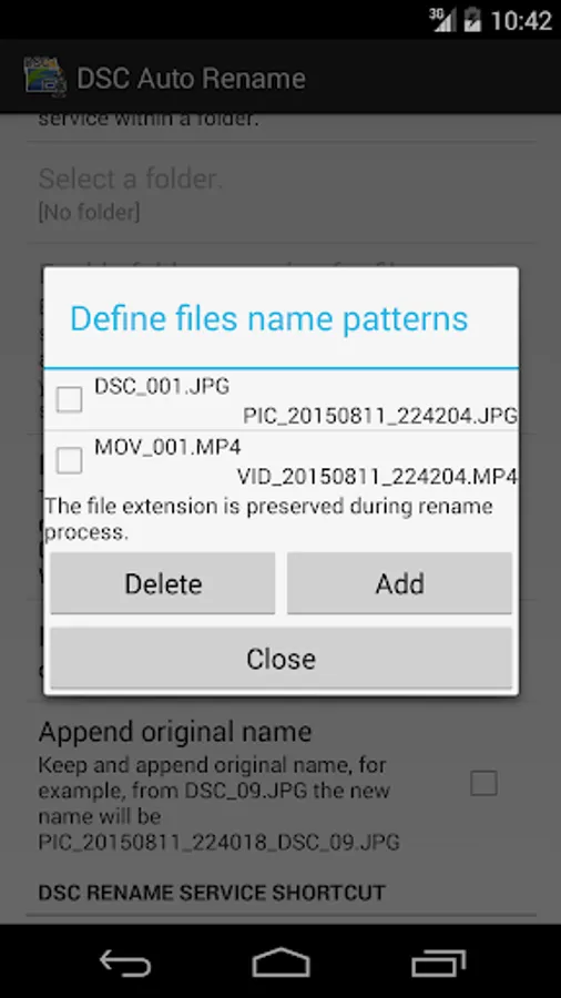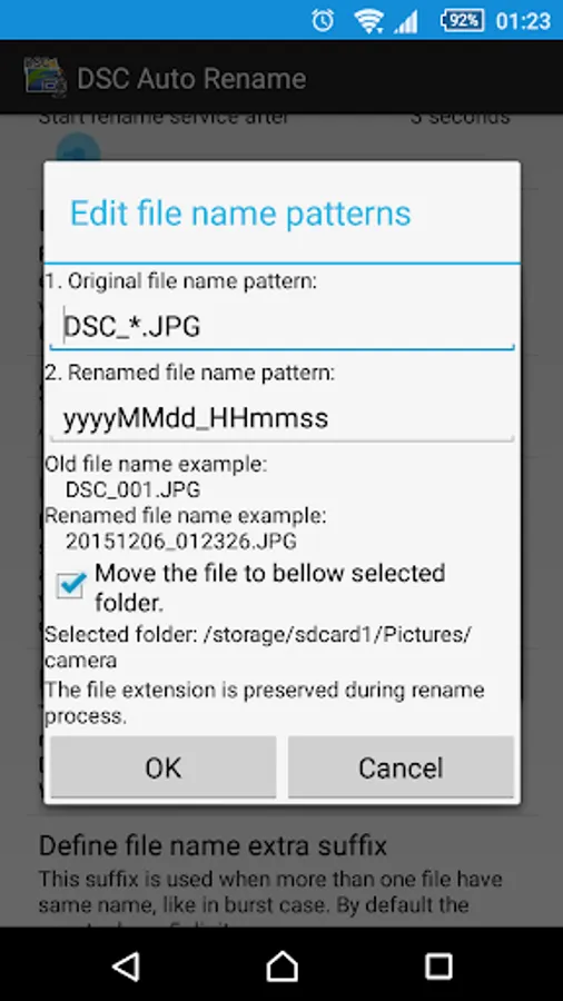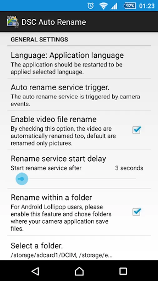 I made this application to rename pictures and clips from my phone Sony Xperia V automatically based on date and time of file, from DSC_0001.JPG or MOV_0001.mp4 to 20150414_213616.JPG or 20150414_090523.mp4.