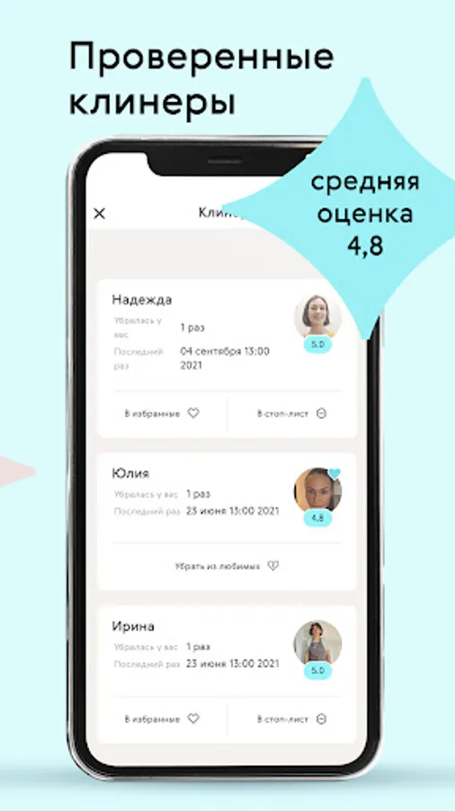We carefully train each cleaner, and also motivate performers to clean really clean. The average rating of our cleaners is 4.8