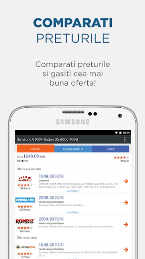 Folosind aplicatia mobila a celei mai accesate pagini de comparare din Romania, puteti alege intre ofertele a peste 850 de magazine.