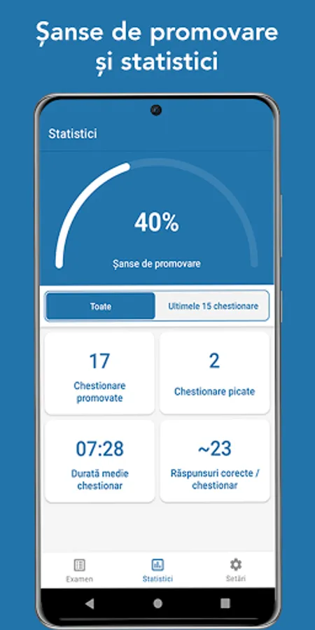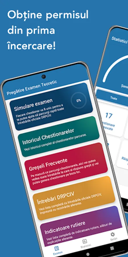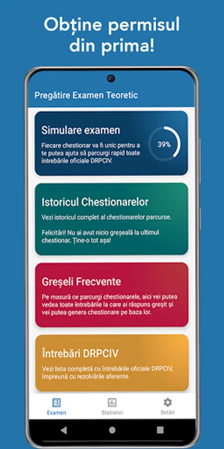 In addition, you can schedule the theoretical exam directly from the application and have a section dedicated to your statistics along with the probability of passing the exam calculated based on your activity in the application.
