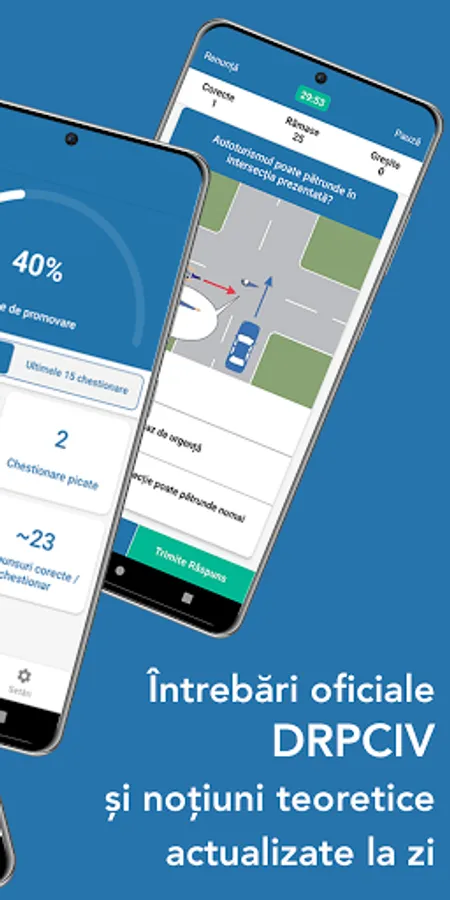 "Car Questionnaires - Drivero" contains all the official DRPCIV questions for categories A, B, C, D.