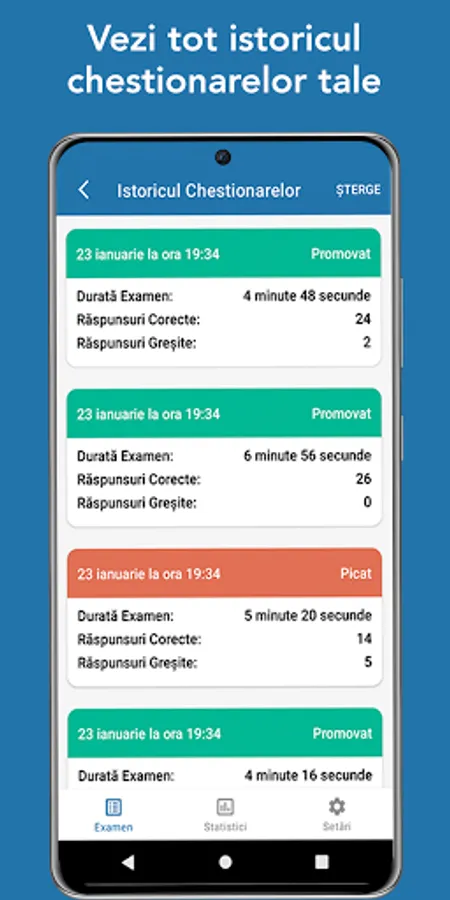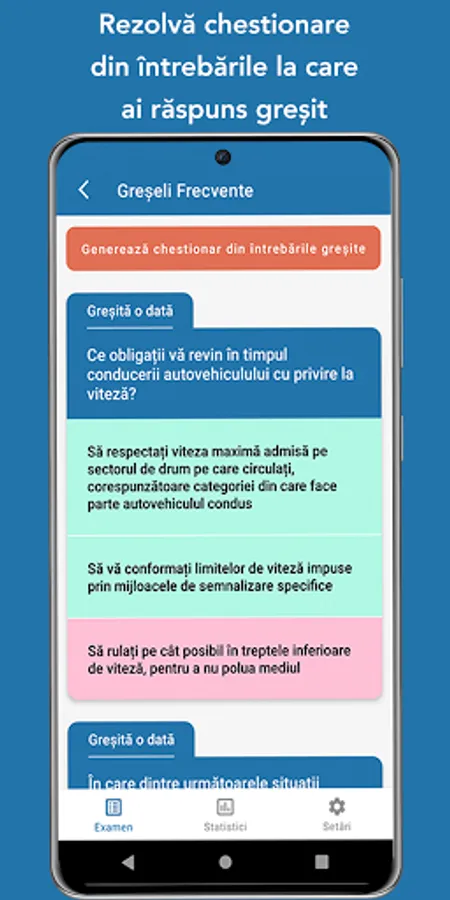 You can always generate new car questionnaires only from the questions you got wrong and you can see the whole list of questions along with the correct solutions.