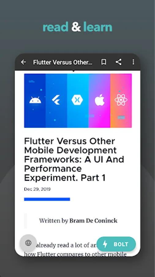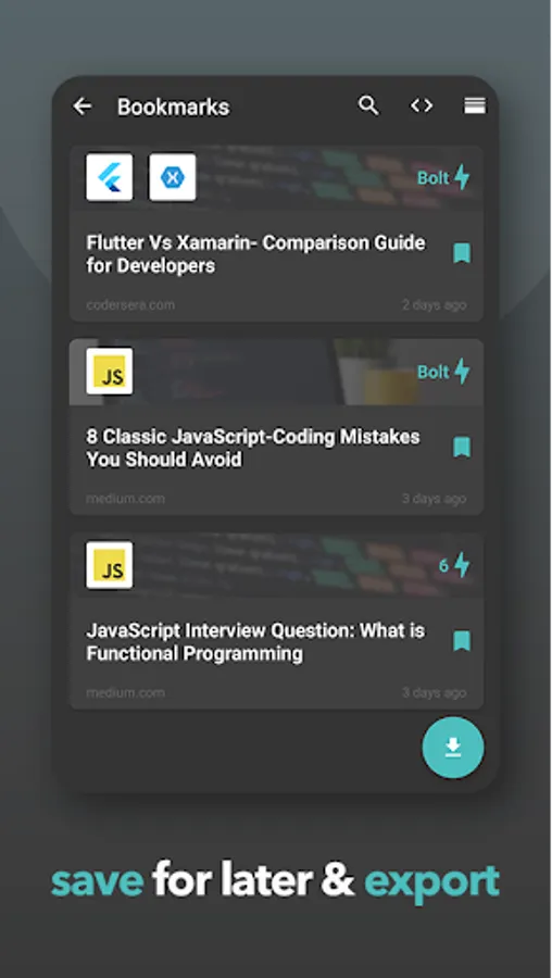 Code News is the best news app for programmers and developers. Here you can check out the latest news about your favorite programming languages and technologies. The app has a simple and intuitive UI based on material design. It also allows users to browse through news, to search and filter based on programming languages and to create bookmarks for later use. You can filter between ~90 programming languages and technologies getting the results that interest you the most. You can also bolt your favorite news boosting them to reach the top list, in this way they will be more visible for others to read. All the news is fetched from the best coding and programming websites. You can order the news between the newest and most bolted ones.