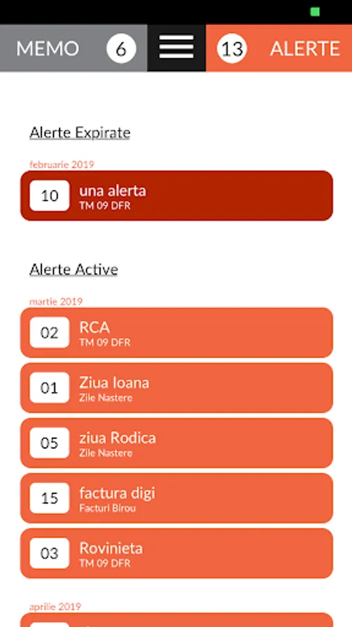 - Creezi un numar nelimitat de MEMO-uri sau ALERTE pe care le poti sterge oricand;