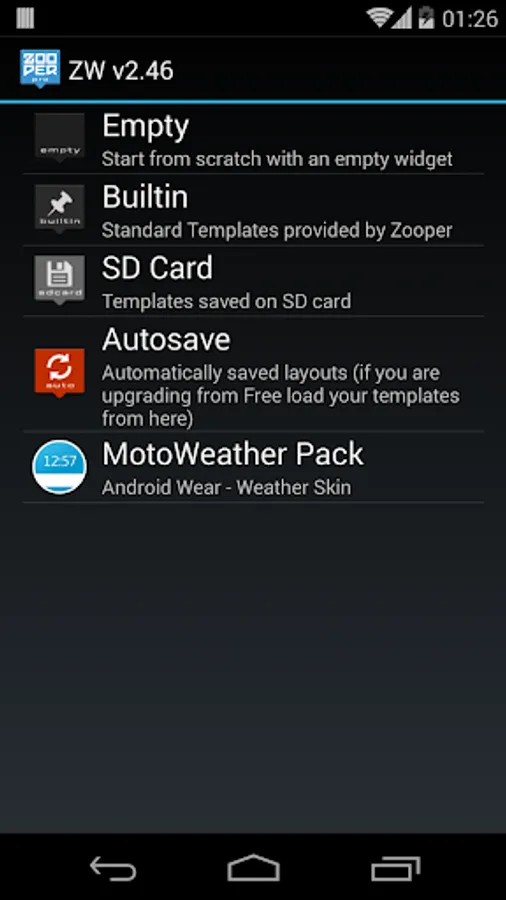 ③ Choose MotoWeather Skin from Zooper Pro widget skins list