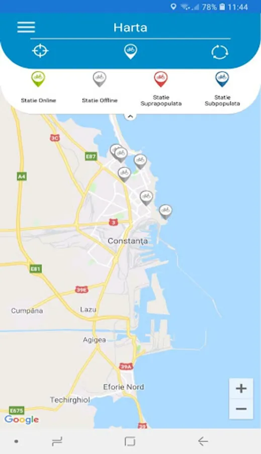 The purpose of the application is to make it easier for smartphone owners to access the CT Bike system's bike map. This allows you to see in real time the number of bikes available, the number of free gates and the status of each station. Another useful feature is identifying the nearest station of your location.