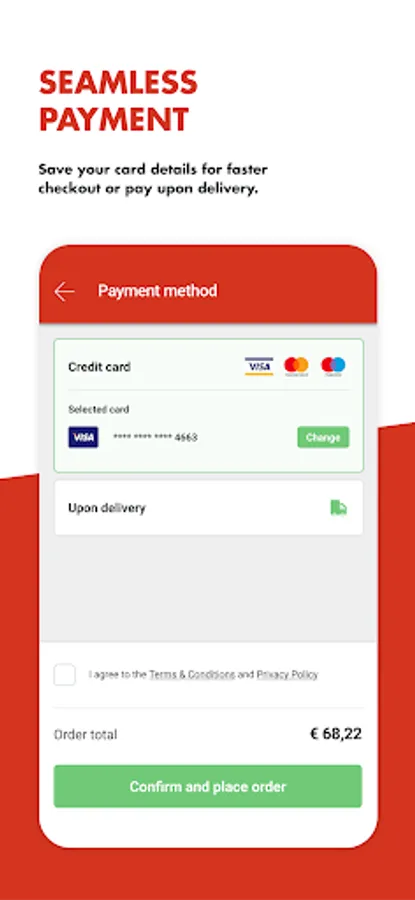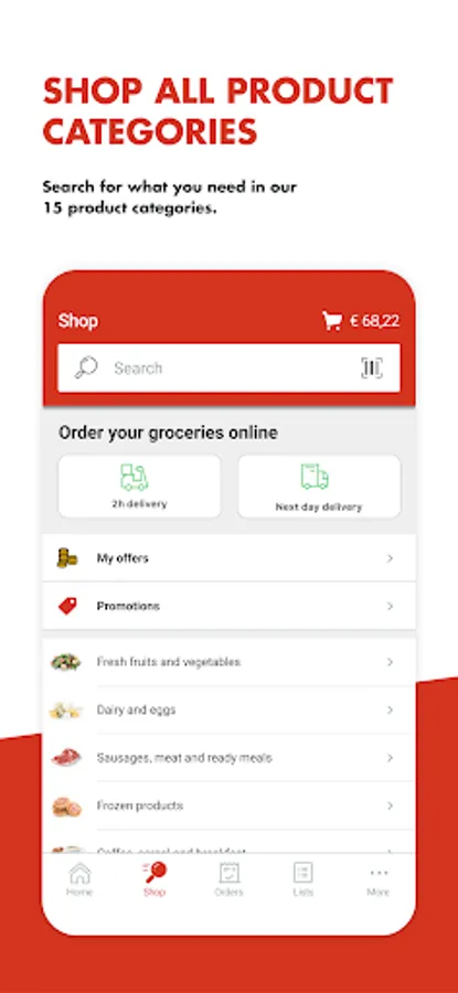 Mega Image App offers the possibility of online shopping wherever you are. You can choose to have the delivery to your home address or pick it up directly from the store. Now you have access to your loyalty card and all the Connect member benefits. We are waiting you with a wide assortment of products and special prices. Each order is carefully prepared for you to enjoy the freshness of our products. Shop quick and easy with Mega Image App.