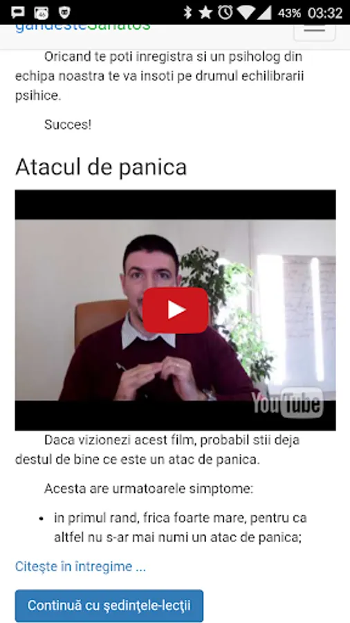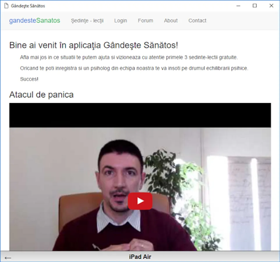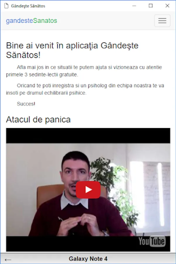 The first application of psychotherapy assisted by psychologists. He has specialized sessions: panic attack, depression, anxiety, obsessive compulsive disorder, shyness, agoraphobia and personal development. The first 3 sessions - lessons are free. It contains explanations and exercises.