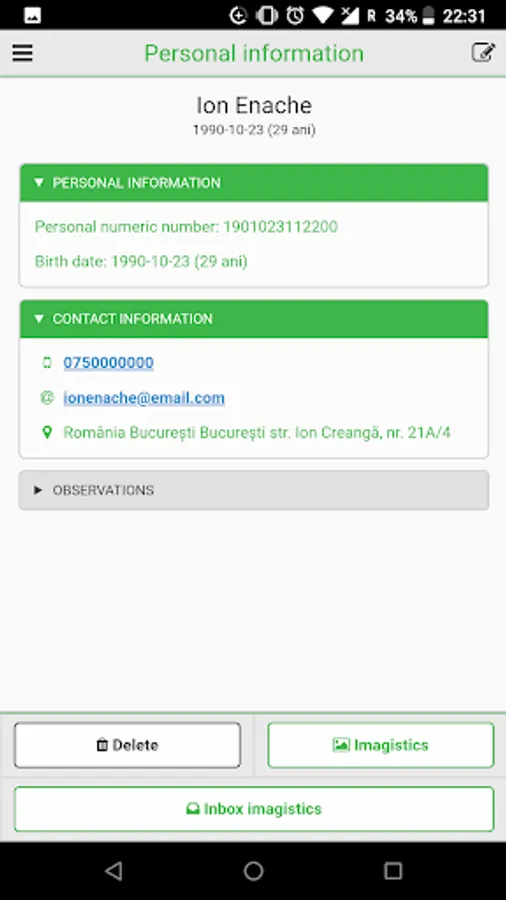 This APP helps you to manage your patient database, it automaticly creates the patient in the database, so the dentist doesn't have to do anything, just to check and examine the x-ray sent by the imagistics center.