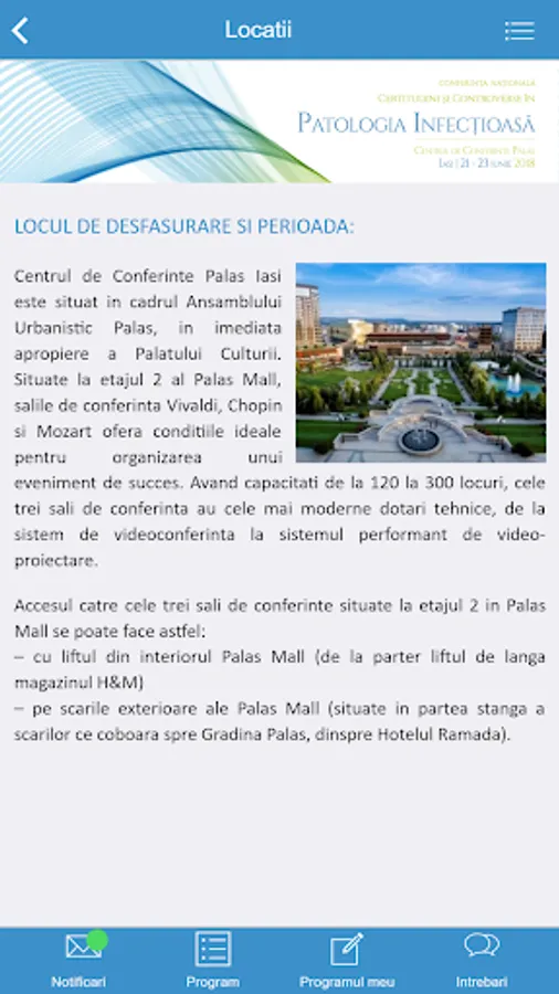 Conference Center is located in Palas Iasi Palas urban ensemble, near the Palace of Culture. Located on the 2nd floor of Palas Mall, conference rooms Vivaldi, Chopin and Mozart offers ideal conditions for organizing a successful event. With capacities from 120-300 seats, three conference rooms have modern facilities, technical from video system video system performance and design.