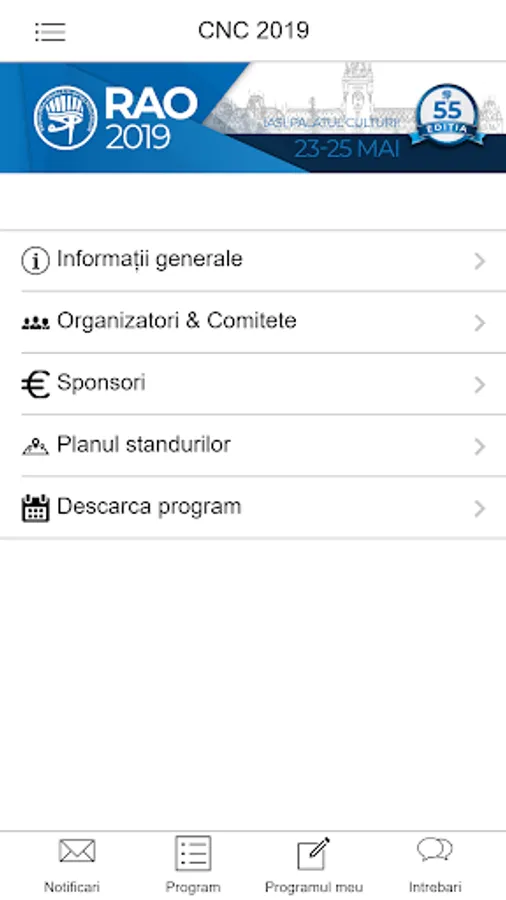 We are glad and honored to invite you to the 55th Annual Meeting of Ophthalmologists and the 12th Ophthalmologic Meeting of Nurses to be held at the Palace of Culture, Iaşi from 23-25 May 2019 .
