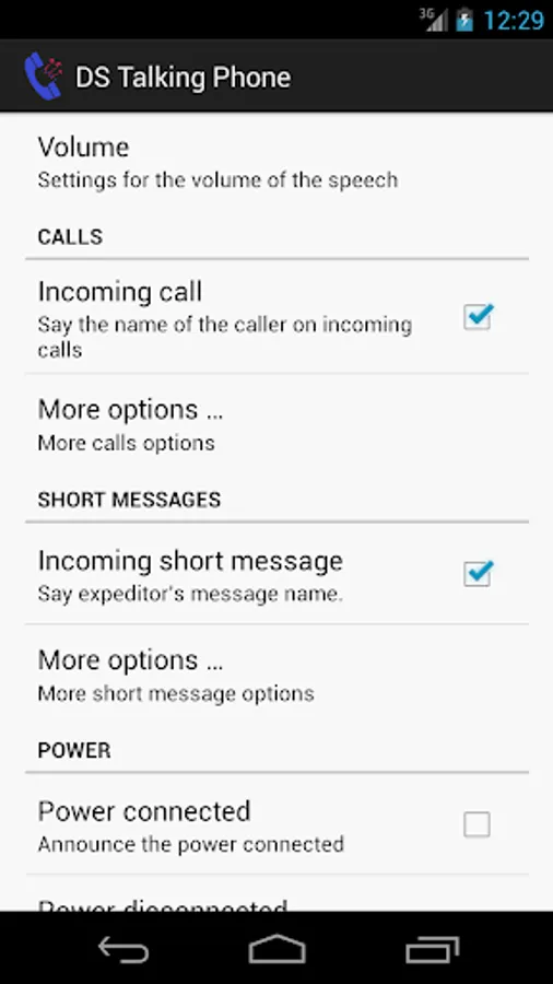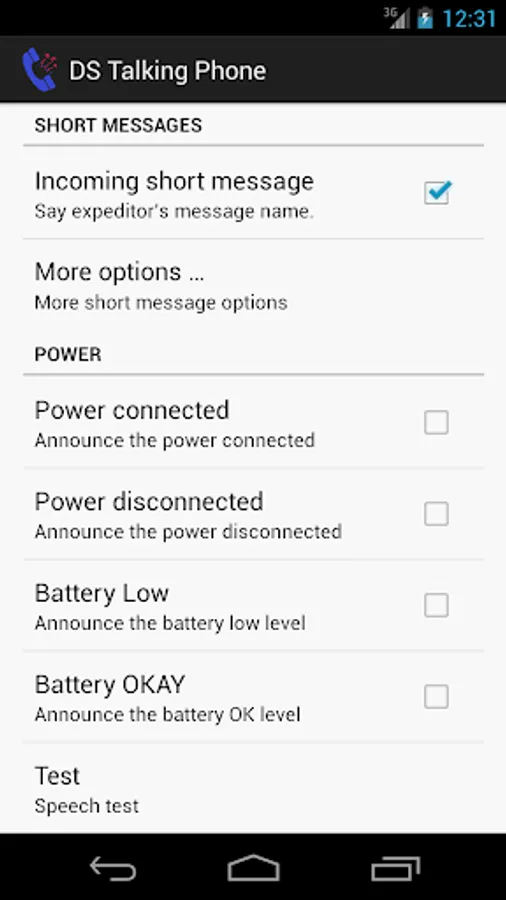 - when you receive a short message: speak the sender id based on your phone's stored contacts.