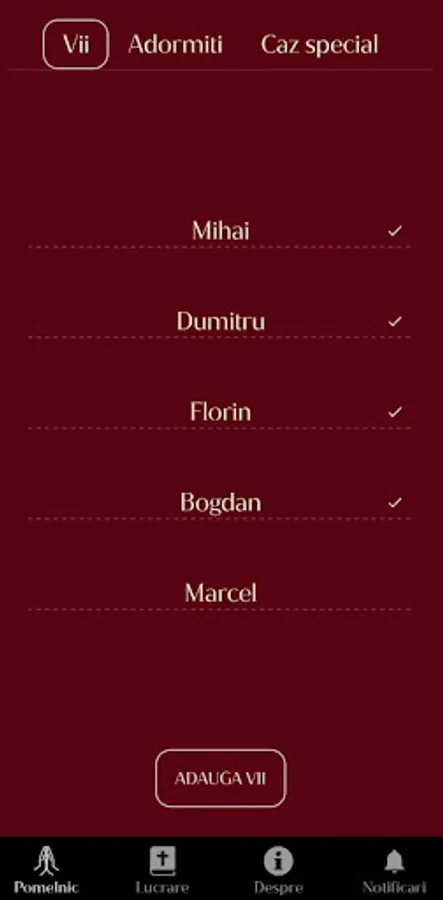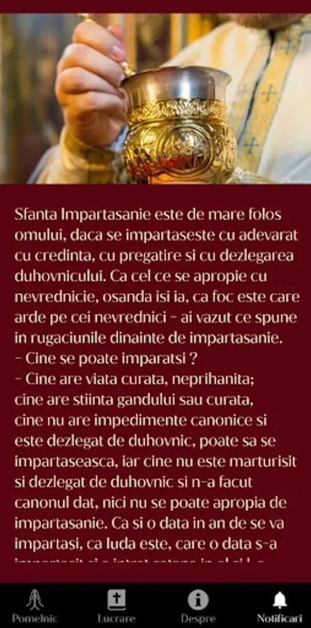 Suntem fii ai Bisericii Ortodoxe, conștienți de misiunea importantă pe care o are fiecare dintre noi în aceste vremuri, în care trebuie să fim tot mai fermi în lupta pentru apărarea dreptei credințe, și păstrarea adevăratelor valori creștine. Intenționăm ca această lucrare să capete amploare și intensitate prin legătură duhovnicească cu Hristos, cu Sfânta Biserică triumfătoare și cu cea ecumenică ortodoxă luptătoare. Sub Acoperământul Maicii Domnului - VLAHERNA , muntele cel cu umbra deasă, în care se mai pot ascunde în duh creștinii vremurilor noastre, să fim multe suflete unite în Duh și Adevăr! Să ne ținem strâns legați unii de alții prin pomenirea neîncetată a tuturor de către toți! Fiecare are o lucrare personală, după putere și disponibilitate. Scopul aplicației este de a unifica și amplifica aceste lucrări prin împreună-pomenirea reciprocă și continuă. Folosește secțiunea POMELNIC pentru a adăuga numele celor ce au nevoie de rugăciune, dar nu uita să îi pomenești și pe ceilalți pe care îi vei găsi acolo