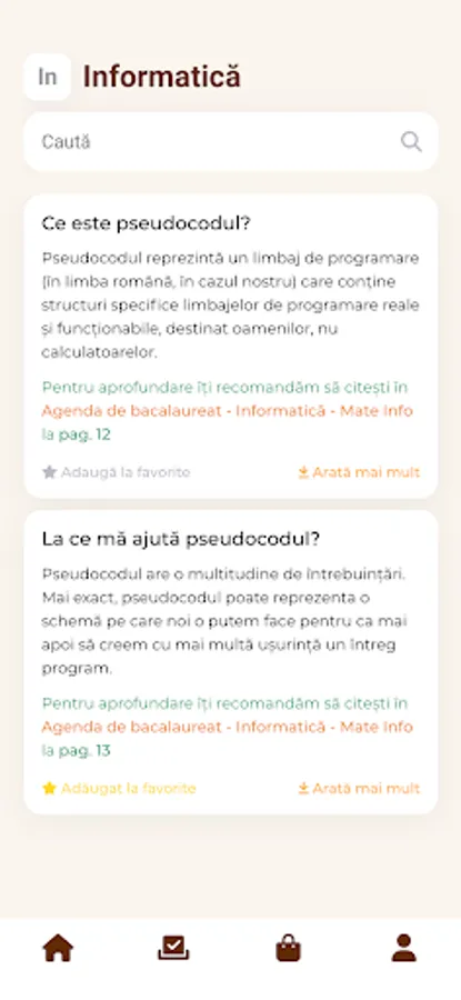 Being structured by questions and related answers, the application gives the possibility to search through the questions and mark the favorite ones for an easier study of only the questions/answers of interest.