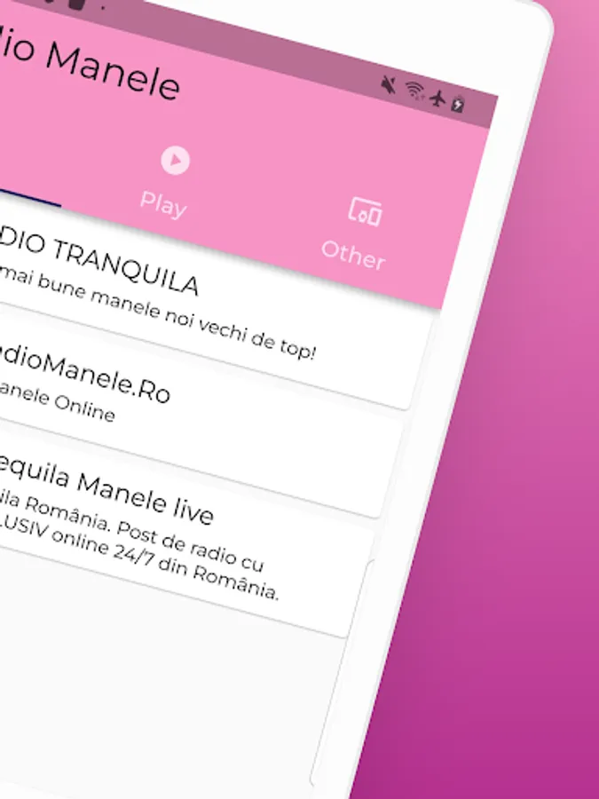 Our radio mobile application allows you to listen to your favorite radio manele stations from anywhere in the world. With a simple and intuitive user interface, you can browse through a wide variety of radio stations: romanian manele, balkan music.