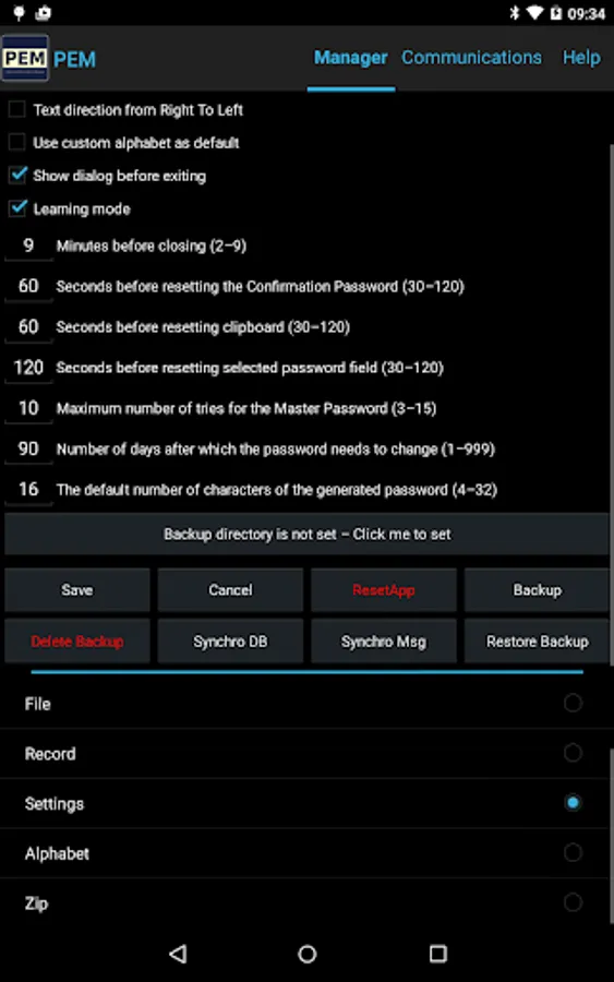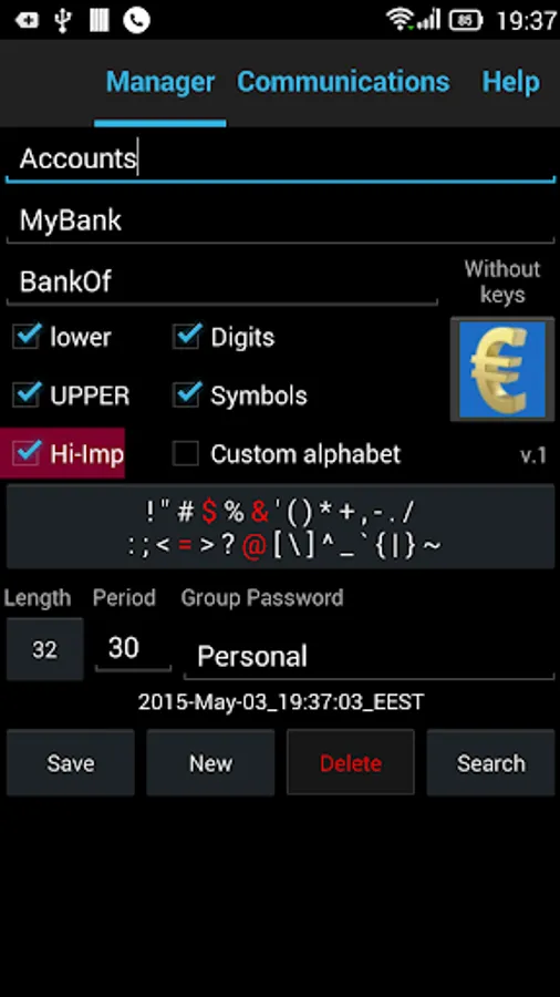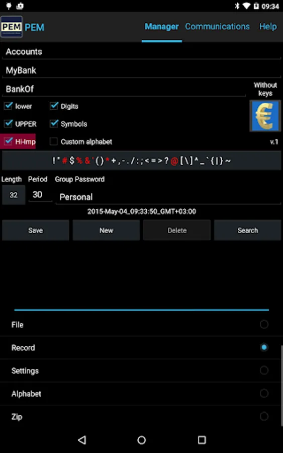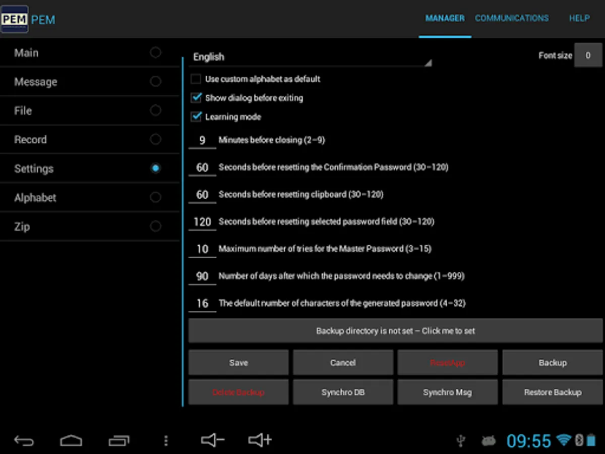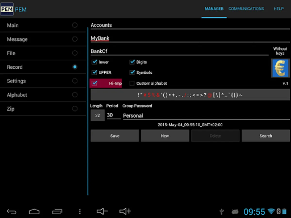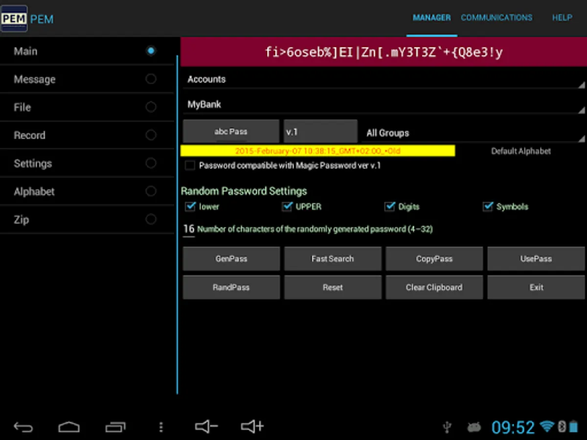 - Extra security (by confirmation password) for certain passwords, messages and files encrypted.