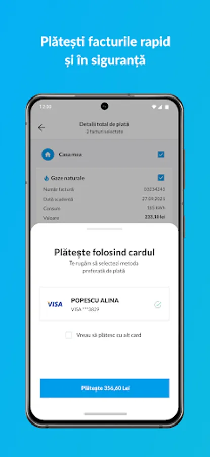 - You pay bills more easily, faster. > You can pay all your energy bills at the same time – whether natural gas or electricity, from any of your consumption addresses. At the end you can save your card data, and you won't need to fill them in the next payment. Moreover, you can save up to three bank cards. Simple and safe.