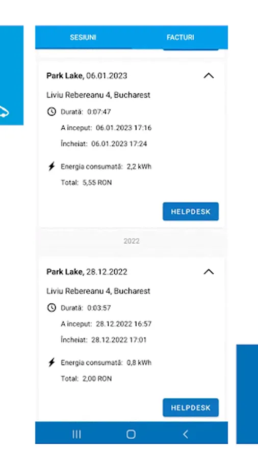 • Charging history: you can access the charging history, energy consumption as well as vouchers issued for previous sessions.