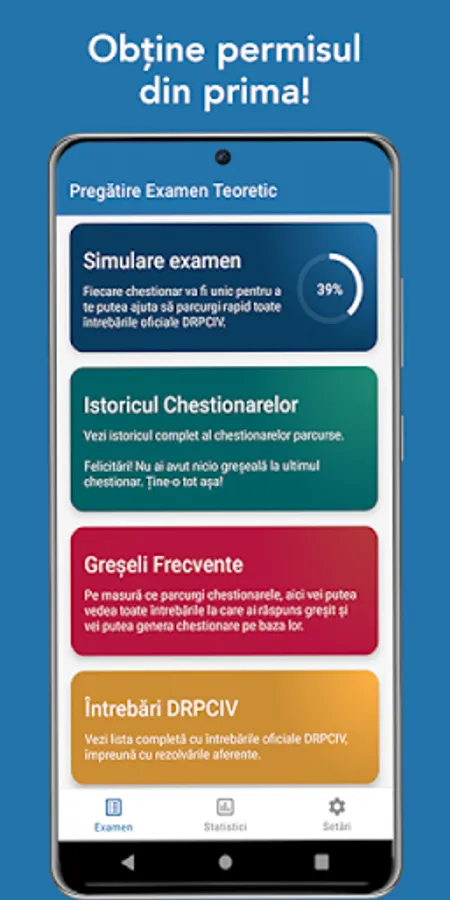 In addition, you can schedule the theoretical exam directly from the application and have a section dedicated to your statistics along with the probability of passing the exam calculated based on your activity in the application.
