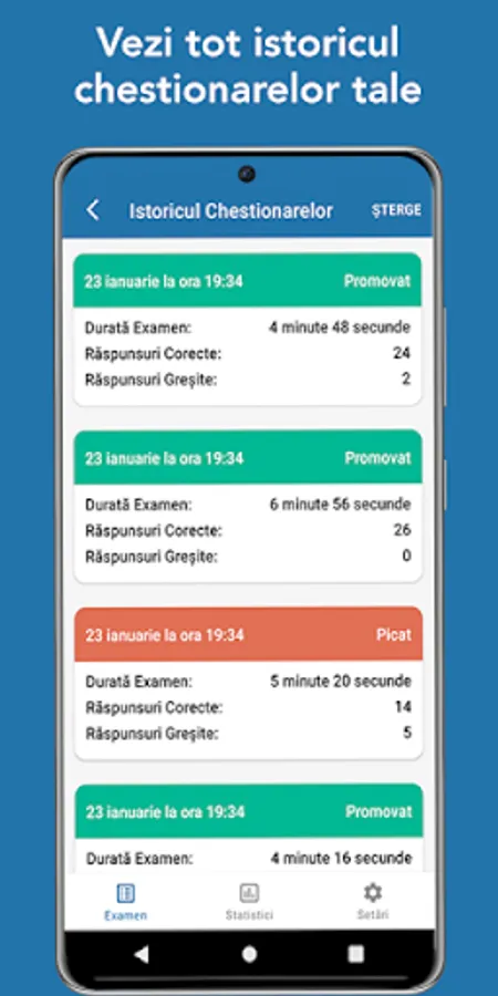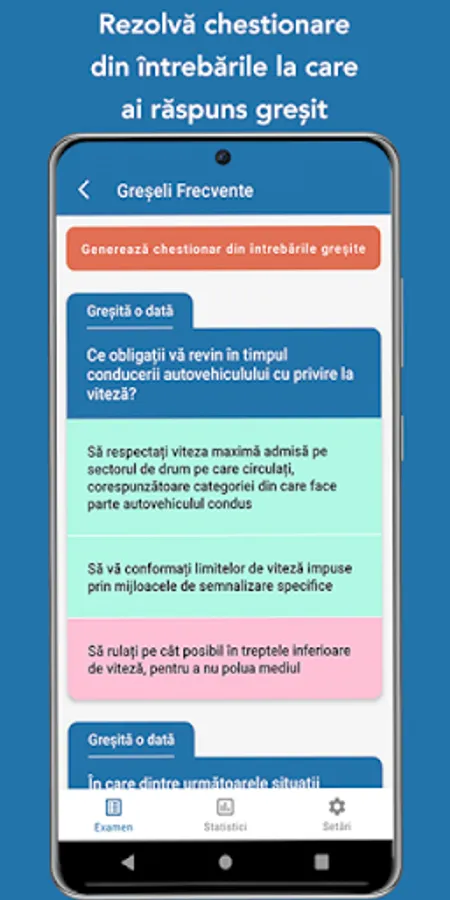 You can always generate new car questionnaires only from the questions you missed and you can see the whole list of questions along with the correct solutions.