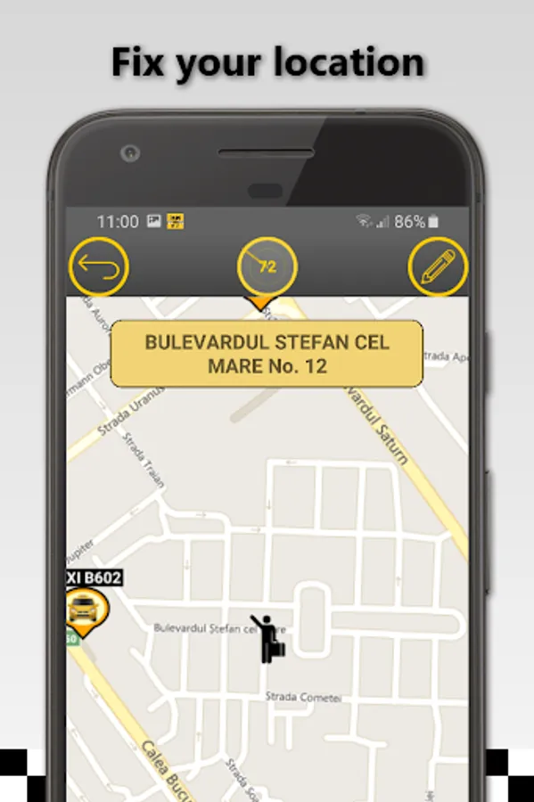 - The location of the terminal is automatic, for adjustment move the map so that the location for TAXI arrival is the desired place.