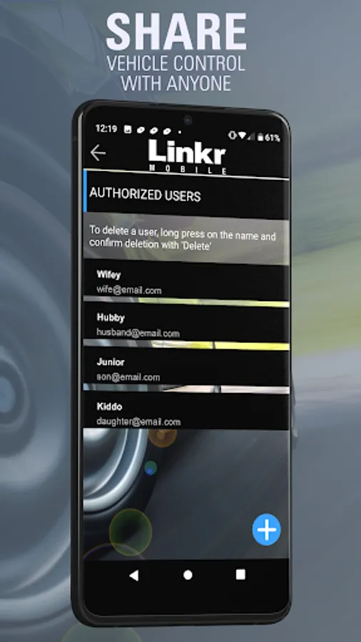 SHARING – Easily and securely share vehicle control with anyone you like by simply adding them to your ‘authorized users’ list. They will only be granted control capabilities like door lock, unlock, & remote start. Only the system owner can access system settings and firmware updates.