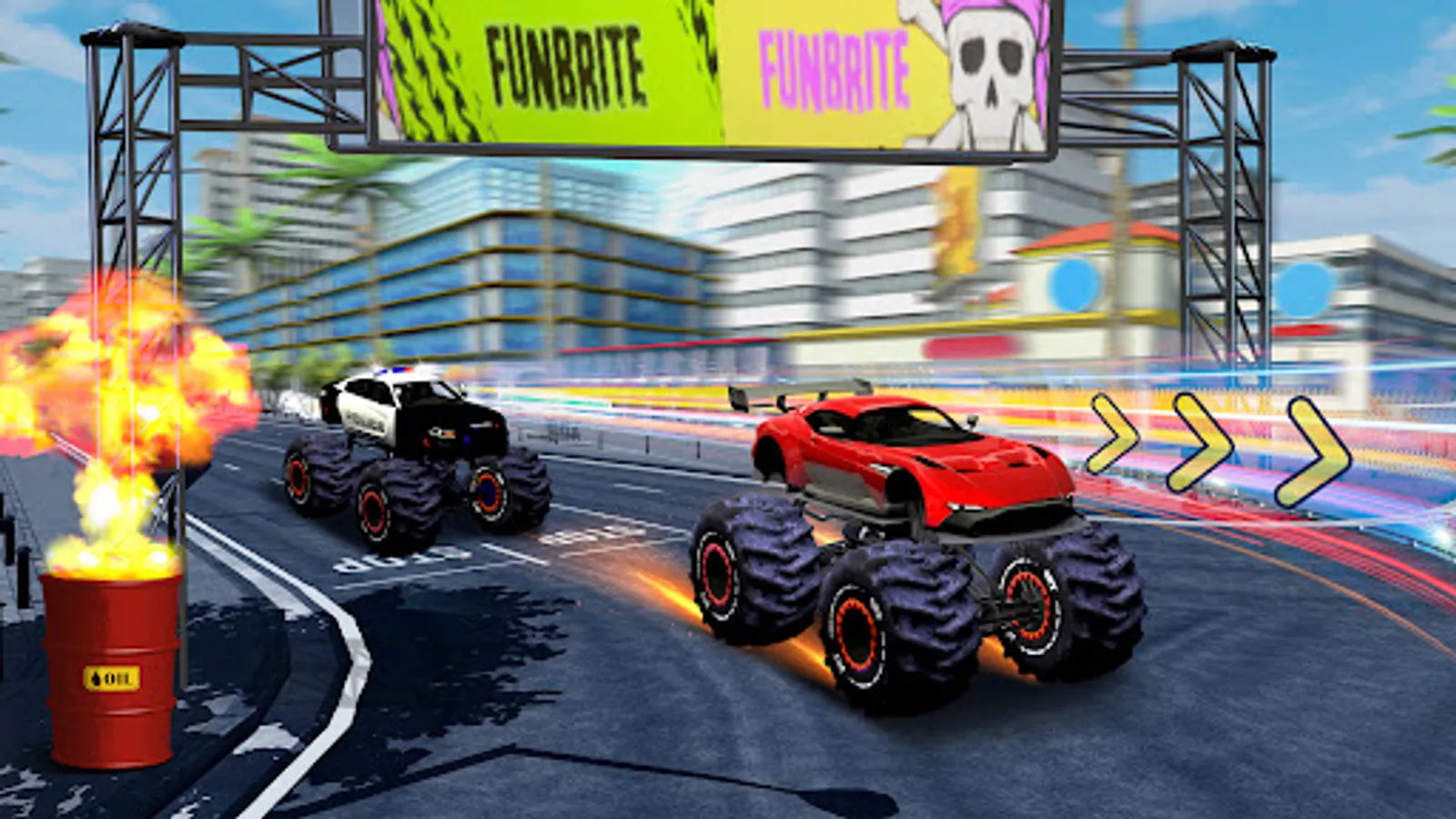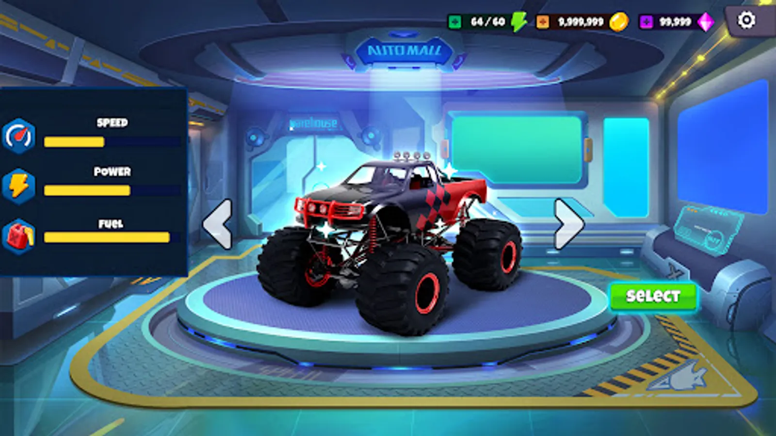 If you're craving an exhilarating global journey, simply tap the Career Button and brace yourself for an unforgettable ride. Unlock new locations and events as you traverse the world in style. Need a boost? Accelerate or halt your truck with ease using the arrows in the bottom right corner. Don't forget to master the steering wheel, controlled by the arrows in the bottom left corner. And should you veer off course, fear not! A quick tap on the icon with the overturned truck will swiftly place you back on track. Embark on daring stunts, amass fantastic rewards, and leave a trail of awe in your wake. At the end of each race, revel in the glory of trophies, coins, and chests as your well-deserved prize. These treasures will prove invaluable when you step into the garage. Customize your truck to reflect your unique style, tweaking both its appearance and performance to conquer the races that lie ahead. Explore a range of vibrant colors and playful patterns to make your monster truck truly your own. Enhance its speed, power, steering, stability, and weight in the stats section. And if the incredible Phoenix Cruiser doesn't quite meet your expectations, fear not! Earn ample coins to acquire another awe-inspiring truck. Remember, the number alongside the truck's name indicates its quality—opt for the legendary Number 1 monsters to dominate the competition. The more you play, the faster you'll ascend the ranks, unlocking new possibilities and thrills. Ready to take your monster truck to the next level? Visit the garage and tap the upgrade button to enhance its performance. Be prepared to part with some golden coins in exchange for this remarkable improvement. Personalize your driver's name to something that resonates with your spirit. Indulge in a shopping spree to acquire new items like helmets and vibrant equipment that perfectly complement your prized monster truck. The driver stats section meticulously tracks your race history, medals earned, and owned vehicles, providing a wealth of crucial information. Return to the main menu, where four empty slots eagerly await your conquests. Fill them with chests earned through races, unlocking a world of possibilities. Don't miss out on daily rewards and extraordinary prizes—tune in every day to elevate your monster truck journey.