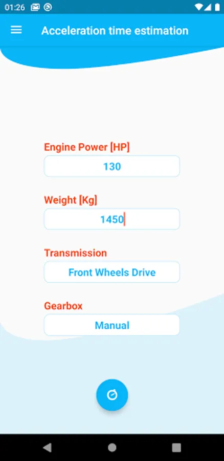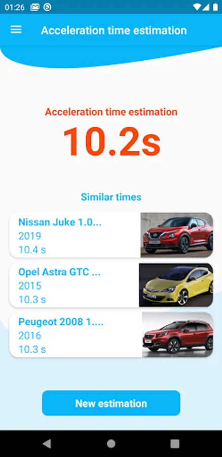 This application allows the Acceleration Time Estimation (0 to 100 Km/h) using basic information on the car.