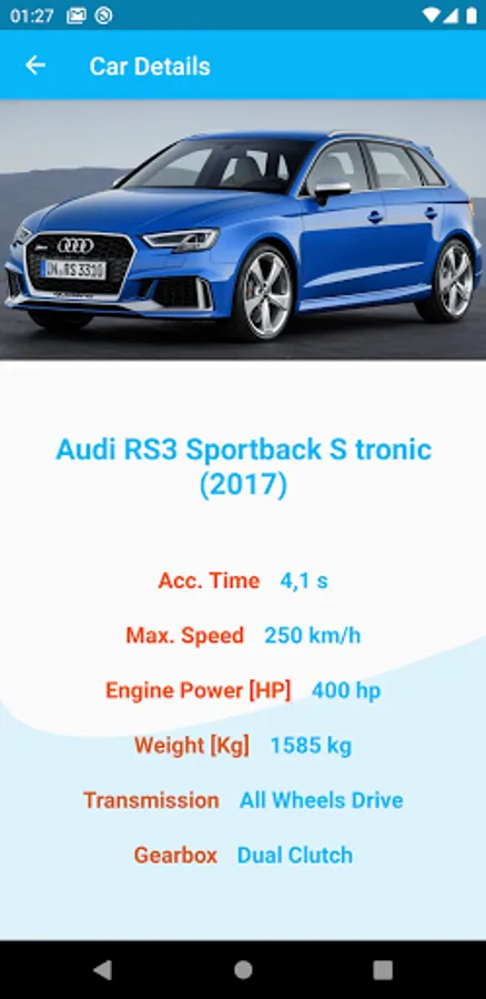 You can also see cars that have similar performances or search the acceleration time of a specific car.