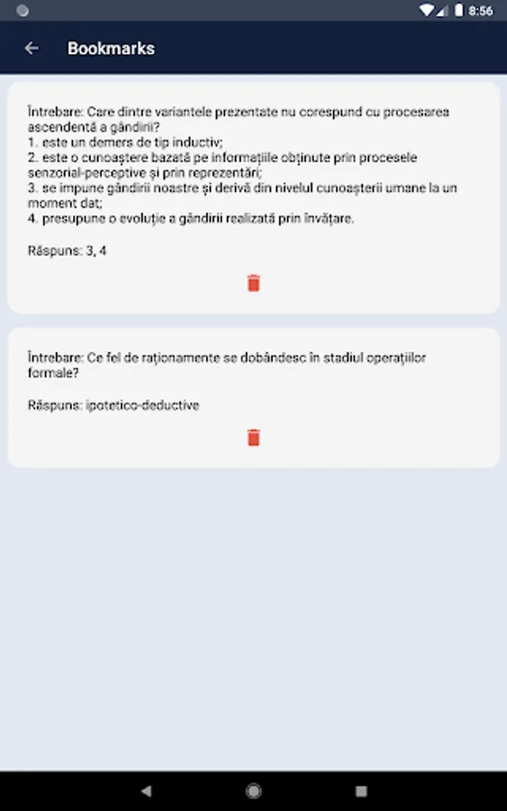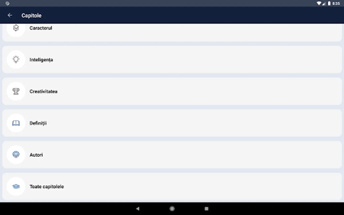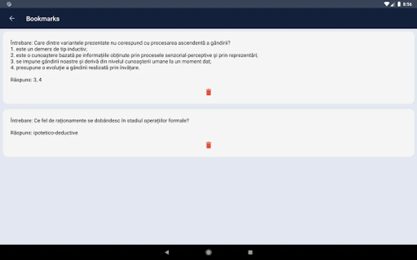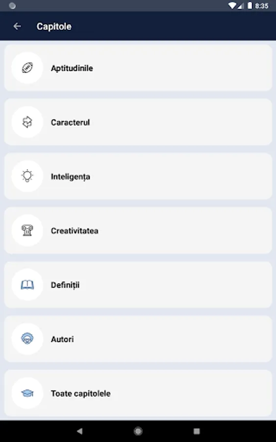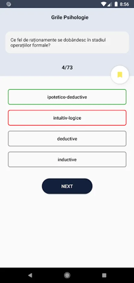 The Psychology Grids application aimed to familiarize you with the entrance exam within the Faculties of Psychology. The collection in the form of an application contains the largest number of items encountered so far in a collection for admission to the faculties of psychology. Through the application, the learning process is done in a pleasant and handy way. The items in this collection are designed to cover as much of the subject matter as possible for the Baccalaureate and Admission tests in higher education.