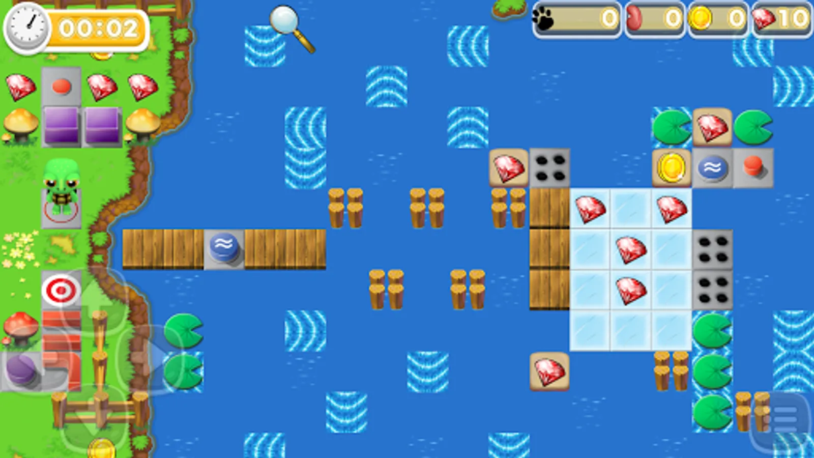 Bobby Turtle is a puzzle game that requires logical thinking to collect all the gems and avoid obstacles and traps to open the entrance to the next level.
