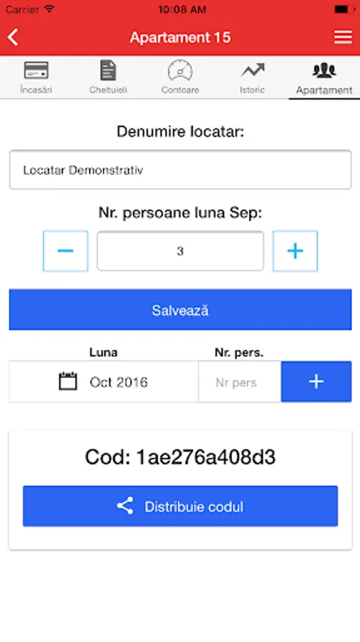 - Change tenants information (number of persons, number of persons in the coming months, tenant name)