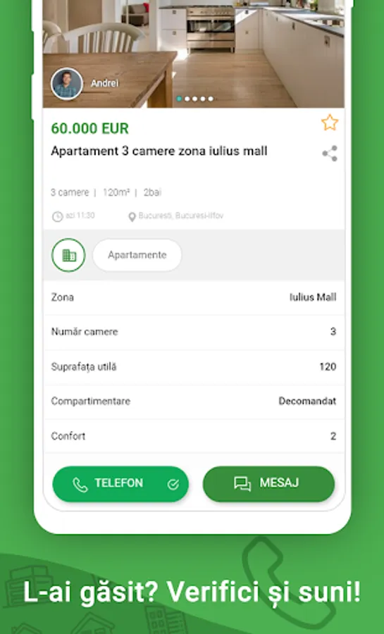 • contactezi anunțurile care te interesează sunând proprietarul direct din aplicație.