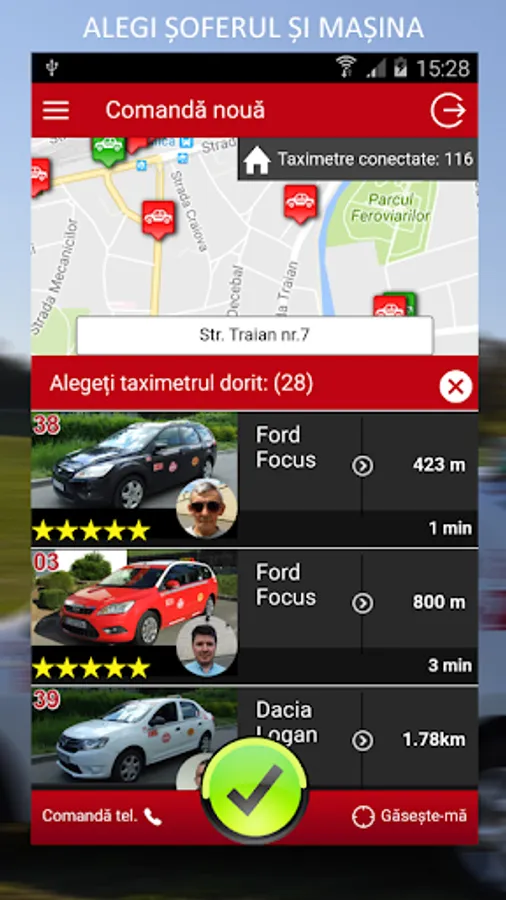In the digital age all the stress is reduced to choosing the right customer taxi application !! Download the Daniel Taxi application and create an account. Activate the account with the confirmation message received and call a simple and fast taxi! The phone's GSP automatically finds your location, or you can use the "FIND ME" button. In a few seconds from placing the order you will receive the fleet response together with the estimated time and photo driver-car! Choose for yourself who you want to travel with!